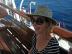 Relaxing on the netting near the bow of the boat