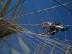 Laughing while watching Robert readying himself for the climb up the mast to the crow's nest