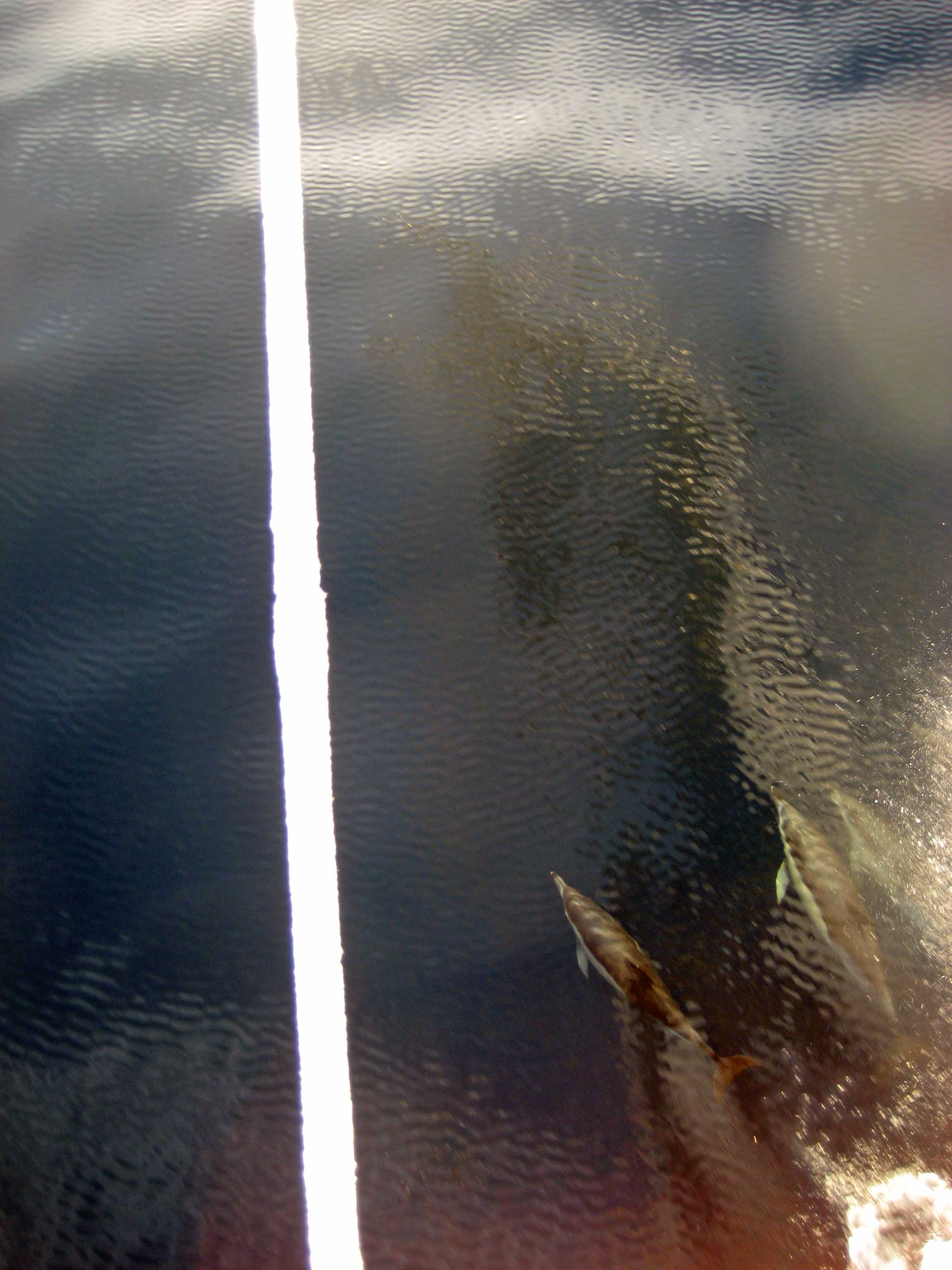 Dolphins swimming along the Royal Clipper